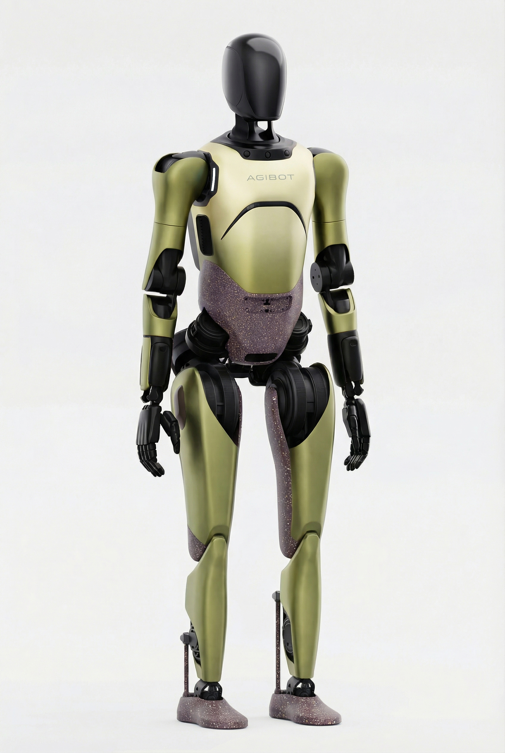 AGIBOT A2 humanoid robots featuring a concept model CMF design developed using Asian trend colors.