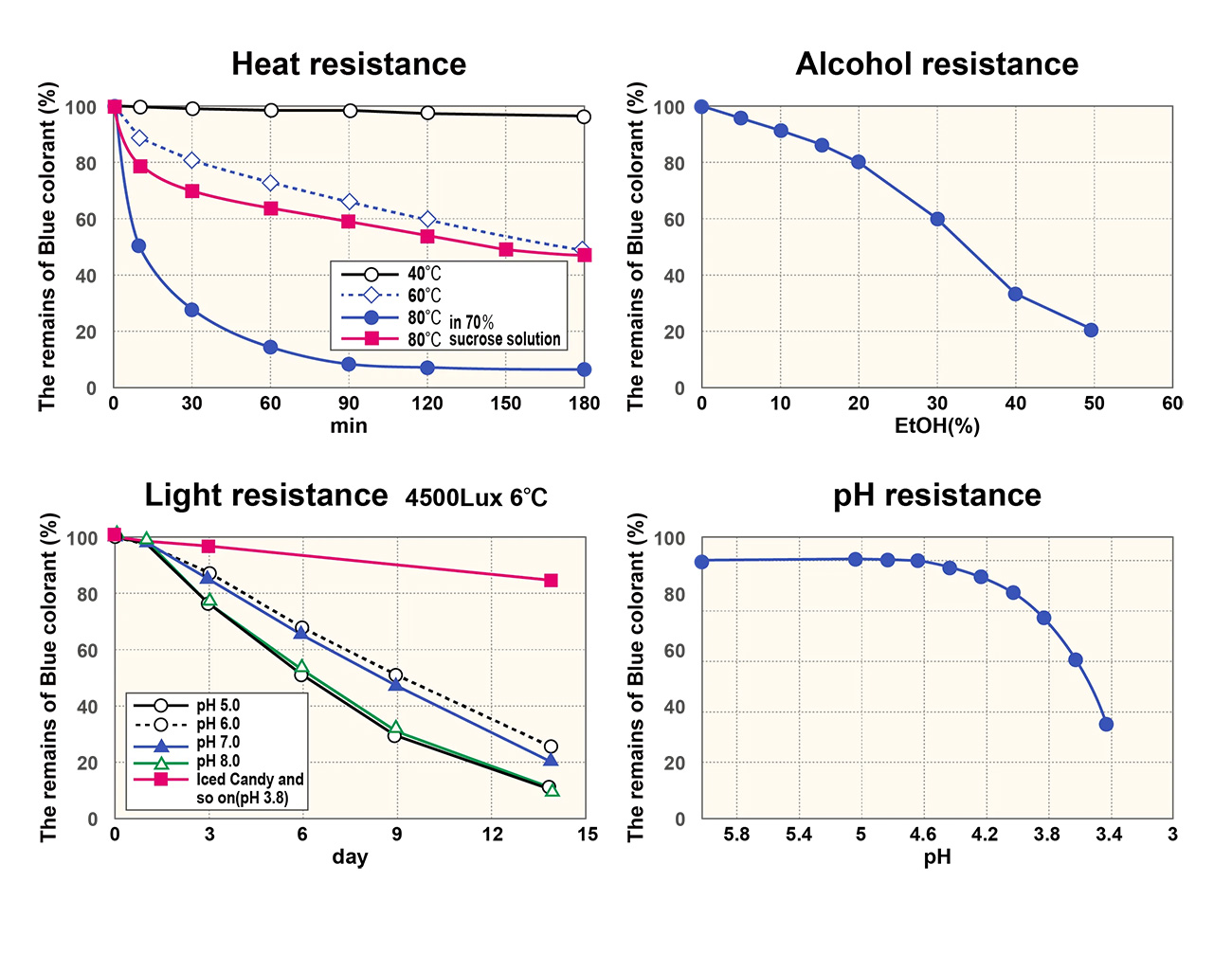 LINABLUE® offers stable properties under certain conditions, such as heat, light, alcohol, and pH resistance.