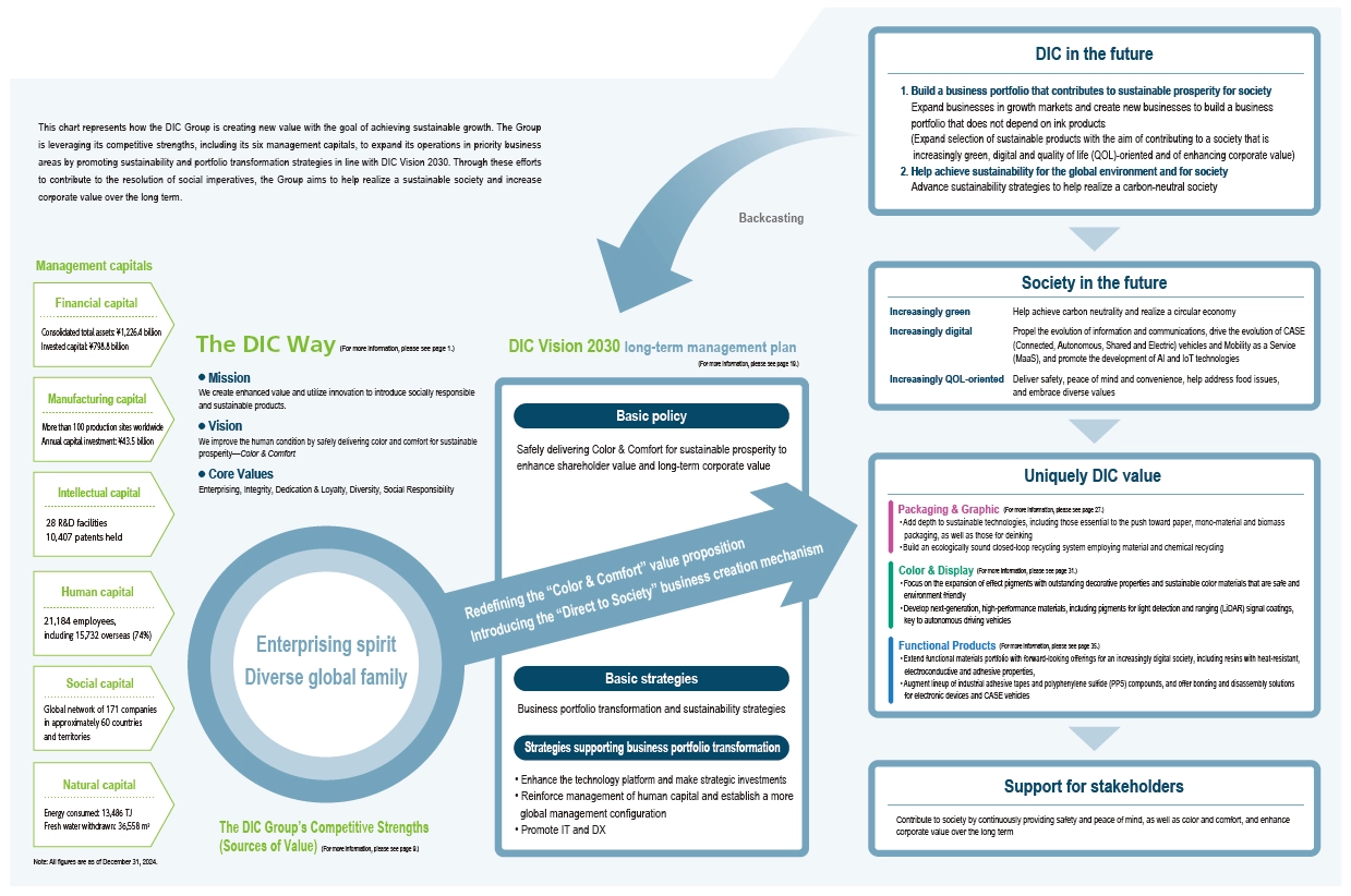 - Expansion of operations by building on core technologies in the areas of printing inks and synthetic resins, DIC’s original businesses