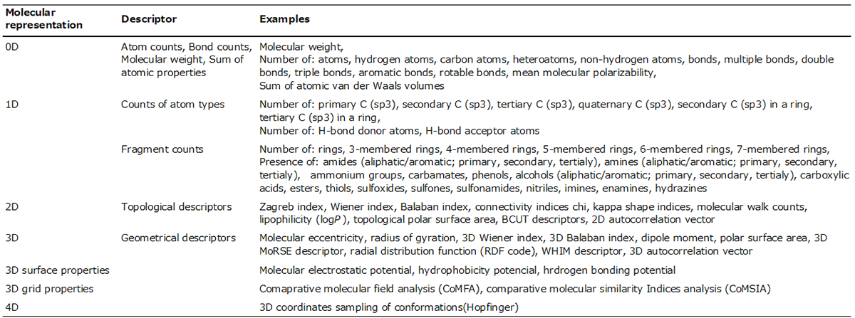 Table 2 Classification of descriptors by the dimensinality of their molecular representation5)