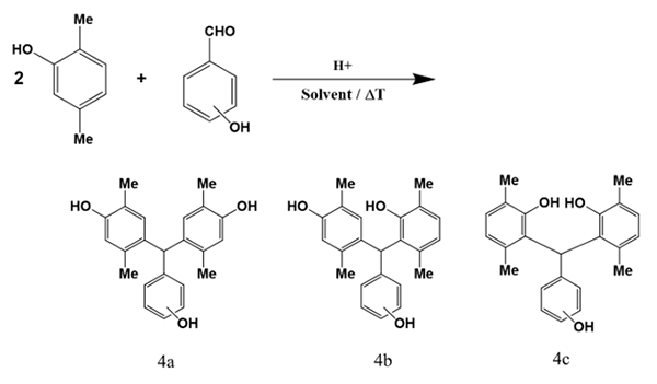 構造-物性との相関関係を見つめていく上での出発点が構造の決定である。分子構造を数値化するための手始めがChemDrawなどのツールを利用した構造式の描画になるが,この構造式の描画が最初の壁となる事例が多い。Fig. 4に2,5-ジメチルフェノールとヒドロキシベンズアルデヒドとを反応させたフェノール系3核体を例示する。