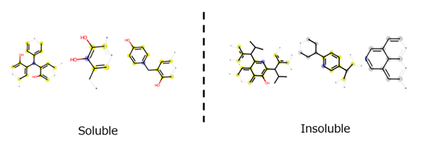 ChemDrawとRDKitから算出された約200の記述子から構築した予測モデルは,どの溶媒に於いても真陰性率(Specificity)が極端に低く,溶解する(陽性)と予測すれば7割程度は当たるという’予測モデル’とは言い難いものであった。